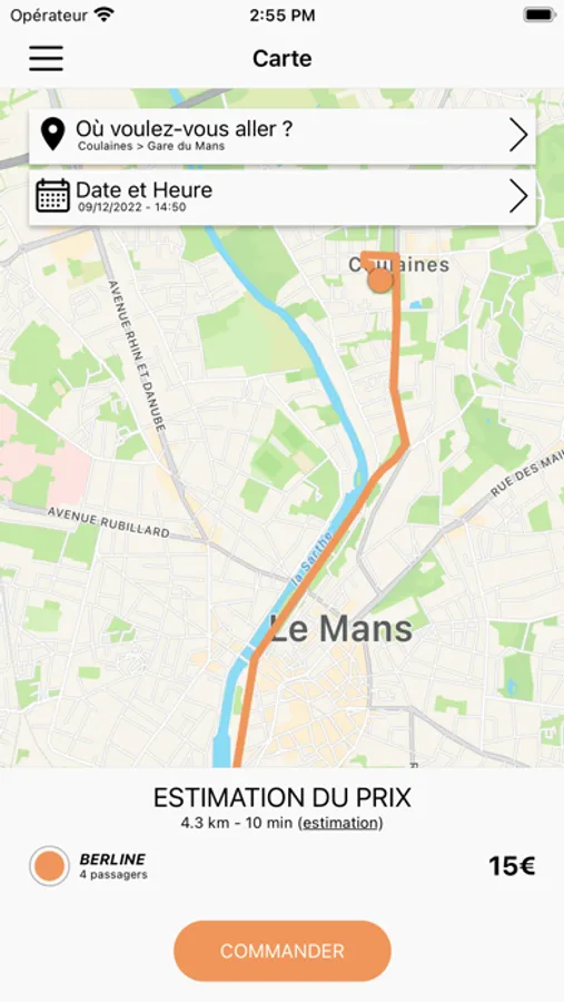 Lancez l’application vous êtes géolocalisés. Indiquez si vous souhaitez un chauffeur dès que possible ou planifiez une heure et date de départ, le nombre de passagers, l’adresse de destination et nous nous occupons du reste.