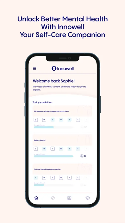 Innowell is your mental self-care companion and guide. Improve your sleep-wake cycle, strengthen your social relationships, practice mindfulness, manage stress, or monitor your diet and exercise – whatever your focus area, Innowell will help you identify it and improve it. Better understand your mental health needs, use evidence based tools to better manage them, and track your progress as your grow healthy habits and untangle bad ones. And in the near future it will enable you to work with your clinician to manage your mental health care plan.