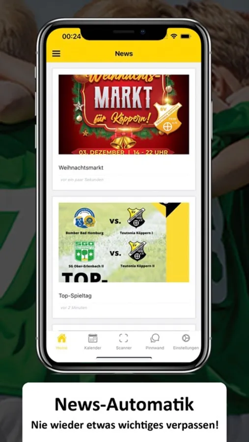 Außerdem landen alle News, Termine, Social-Media-Inhalte und Infos rund um den gesamten Verein direkt in deiner Hosentasche.
