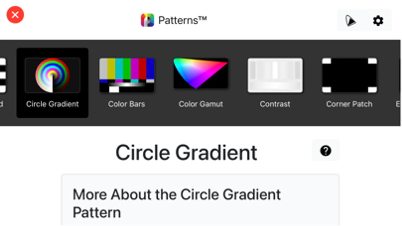 Patterns tests the system, not just the display. The app is designed to work in the color spaces you work in. While other solutions may test a single path, Patterns tests many; after all, your web browser may be in sRGB but that movie you’re color grading could be in P3-D65, ST 2084, so why would you only calibrate or test sRGB?