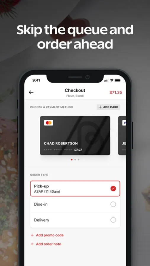 Forgot your wallet? No worries, order seamlessly with secure in-app payment.