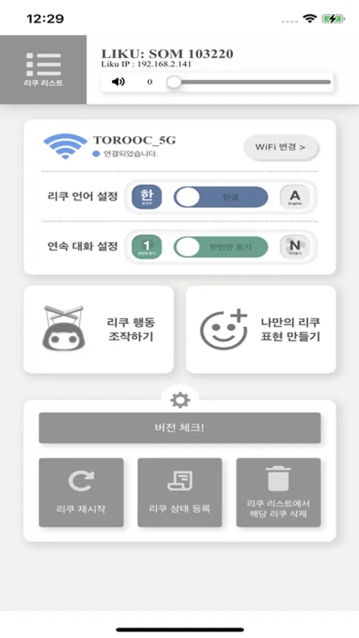 - 앱과 연결한 리쿠의 Wi-Fi 연결 상태와 연결된 주소를 확인할 수 있습니다.