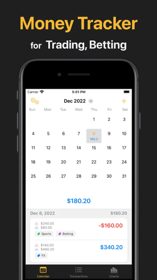 "Money Tracker" is a simple and highly functional income/expense management app. You can use it to keep track of your investments, such as day trading stocks and FX. It is also ideal for sports betting.