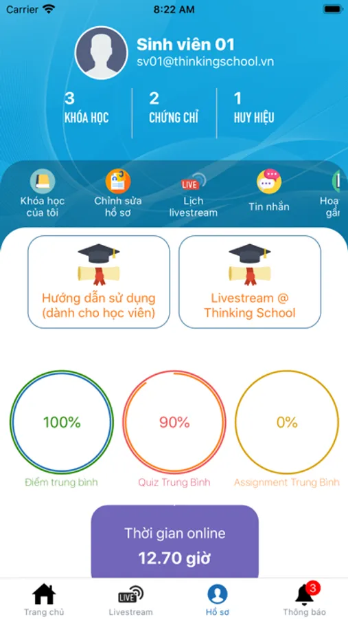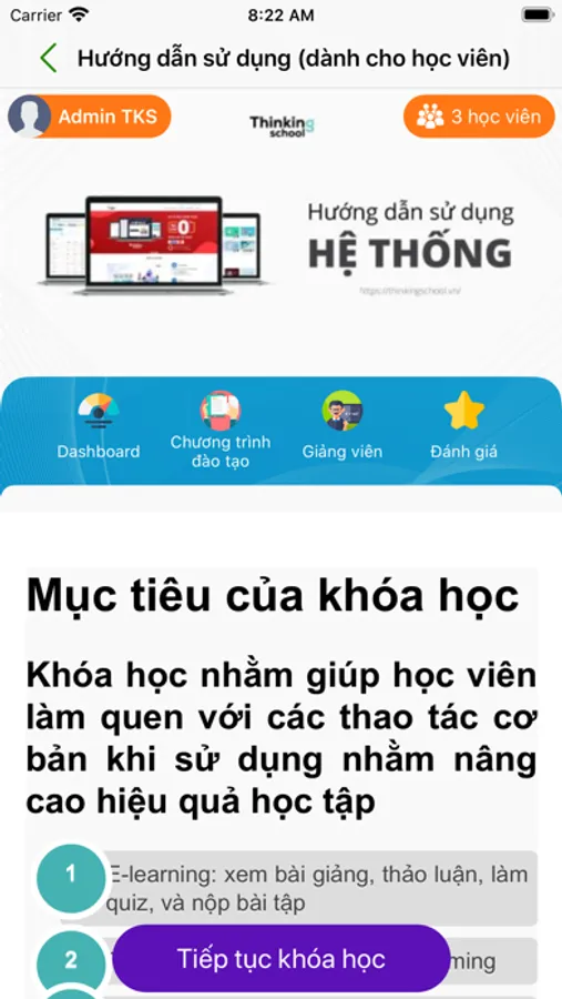 Ứng dụng được thiết kế dành riêng cho các học viên của ThinkingSchool để truy cập các bài giảng trên hệ thống của Thinking School. Các bài giảng bao gồm