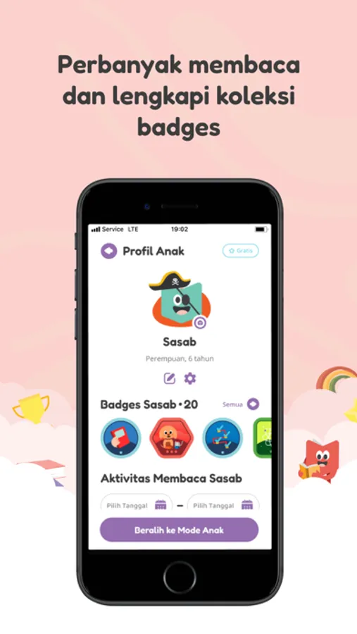 5. Badges keep kids motivated by rewarding children for reading milestones.