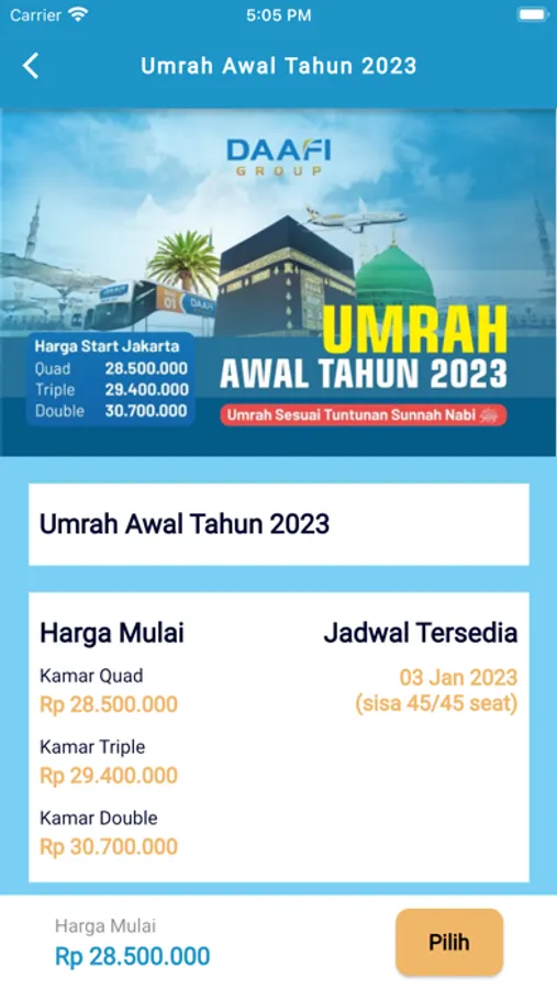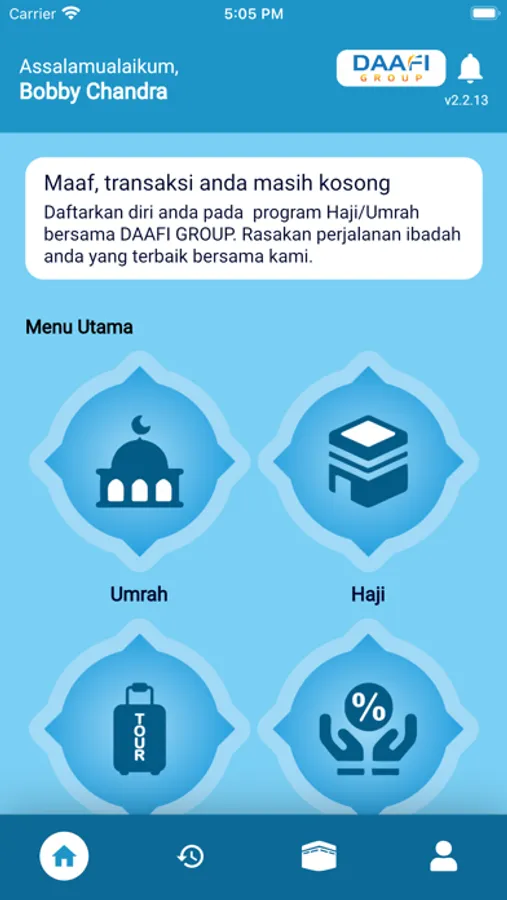 Daafi Tour adalah biro perjalanan wisata umrah dan haji yang memiliki izin resmi dan terdaftar di Kementrian Agama Republik Indonesia. Kami berkomitmen untuk menjunjung tinggi amanah dan kepercayaan jamaah sebagai tanggung jawab kami dalam melayani jamaah.