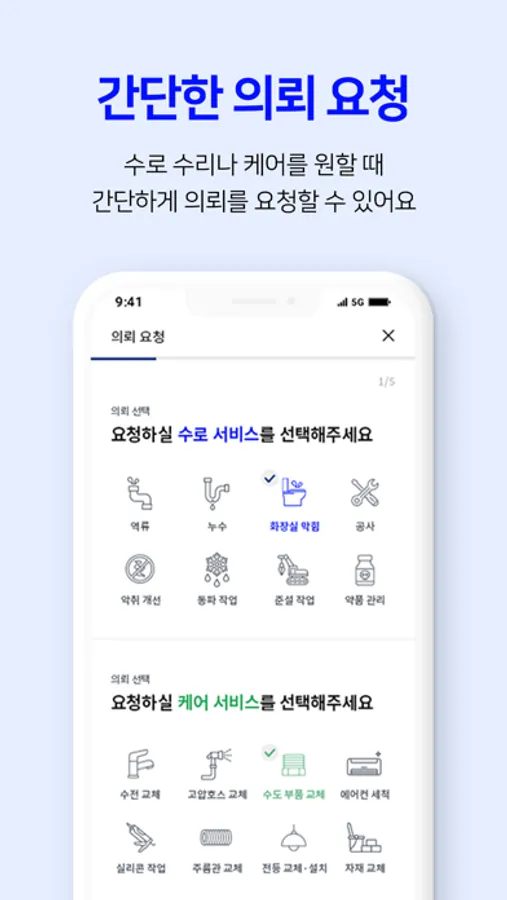 -역류/누수/막힘/악취 관리/동파 작업 등 필요한 서비스를 선택 하세요