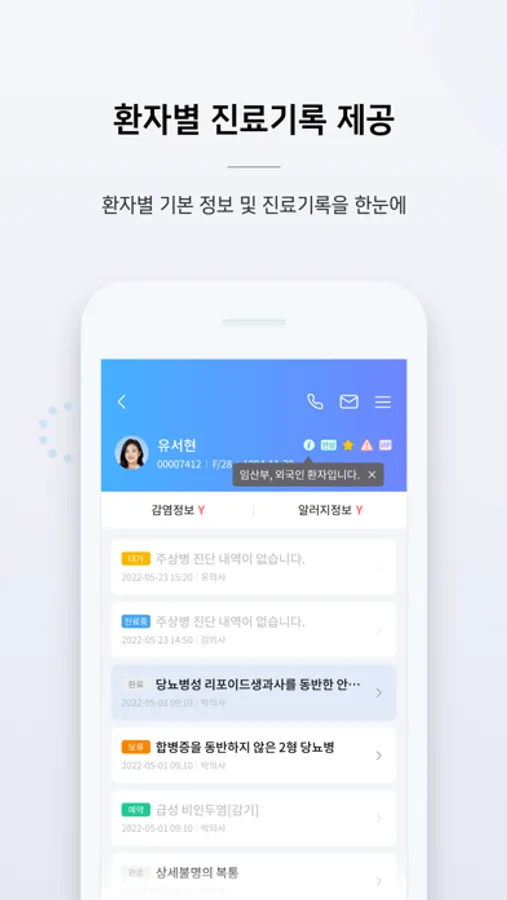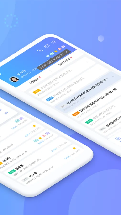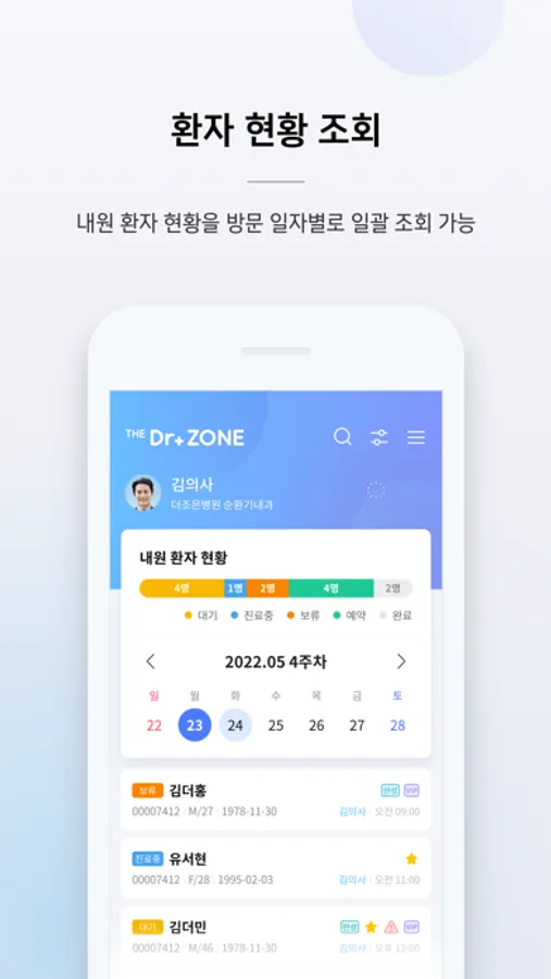 날짜별/조건별 접수된 환자 리스트를 빠르게 조회하고 실시간으로 변하는 상태 확인 가능