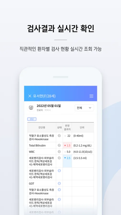 환자가 진행한 다양한 검사의 검사결과를 조회