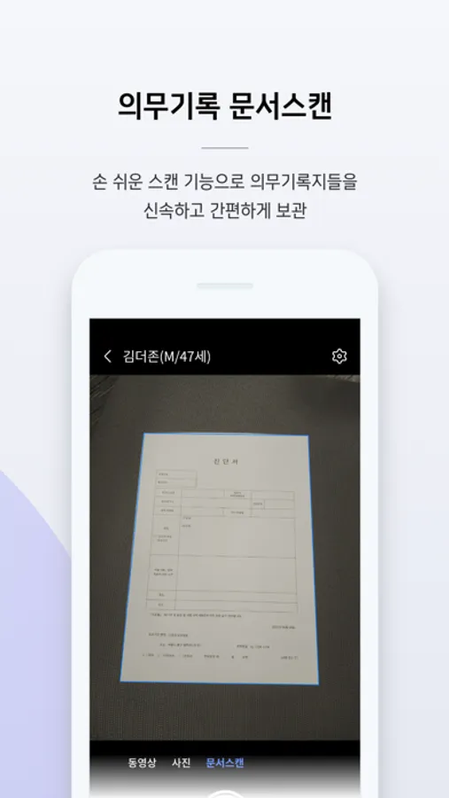 문서스캔 기능으로 의무기록을 스캔 및 업로드하여 서버에 저장