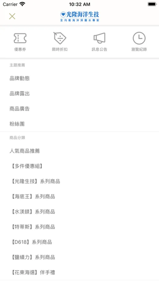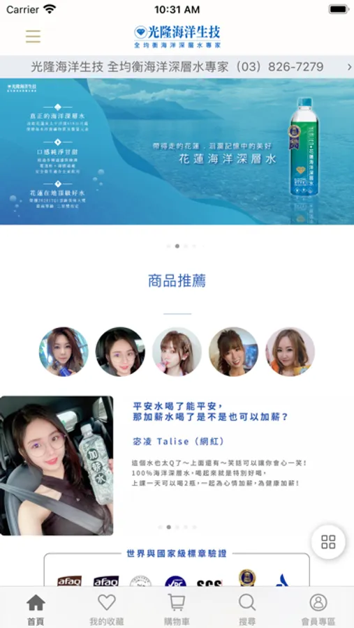 全均衡海洋深層水專家,並網羅花蓮在地特色伴手美食,提供APP隨時線上購物服務,