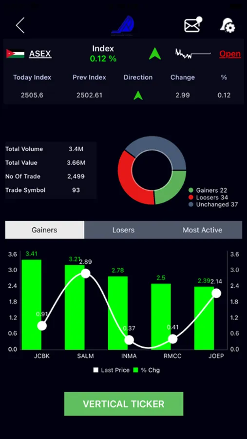 • A summary of Amman Stock Exchange performance: trading value, number of traded stocks, index value.