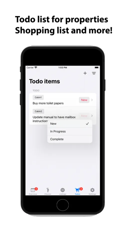 6. Todo/Reminder tool for keeping track of inventory, shoppings and maintenance for multiple listings.