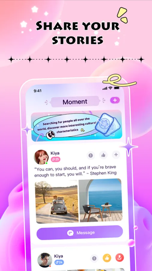Kiya is a fast and effective way to share the moment with your friend, motivate pepople and