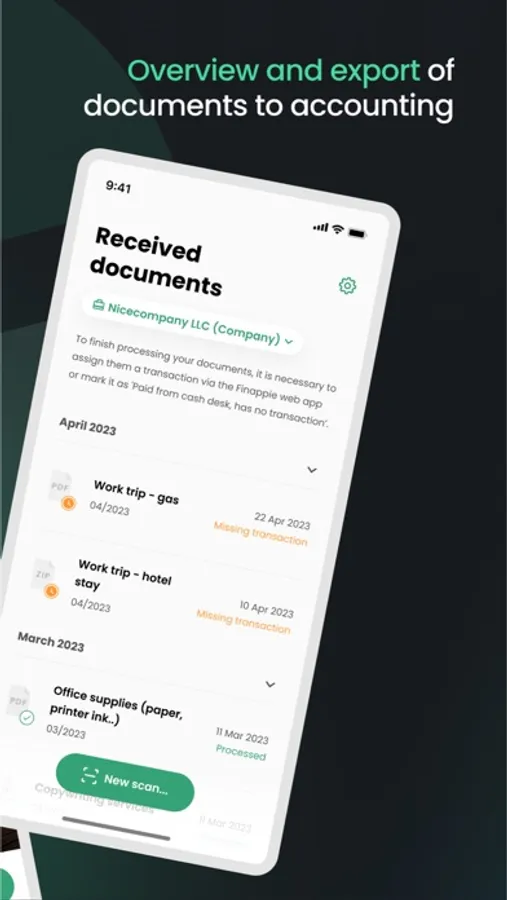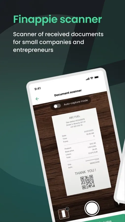 The Finappie mobile app includes a scanner for easy digitization of physical documents and receipts. To access all available functions, please use the web application.