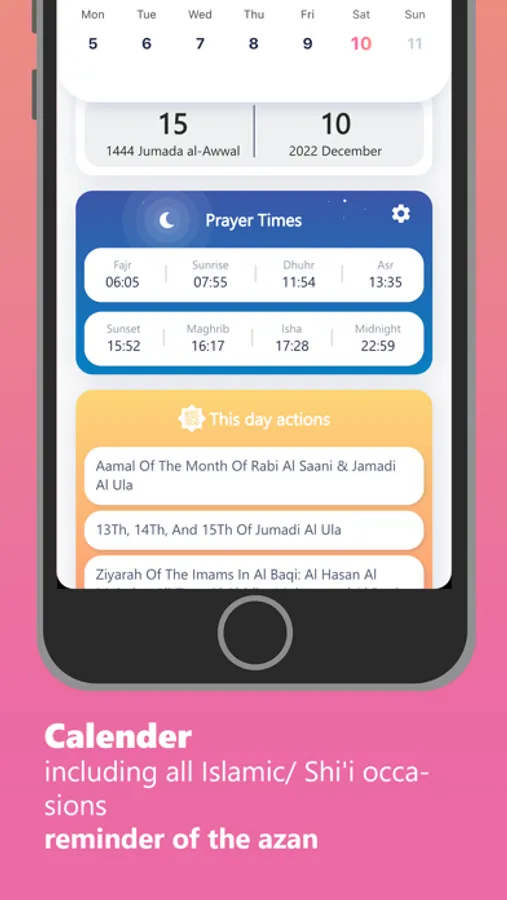 - Having access to the calendar to get informed of the recommended deeds on religious occasions