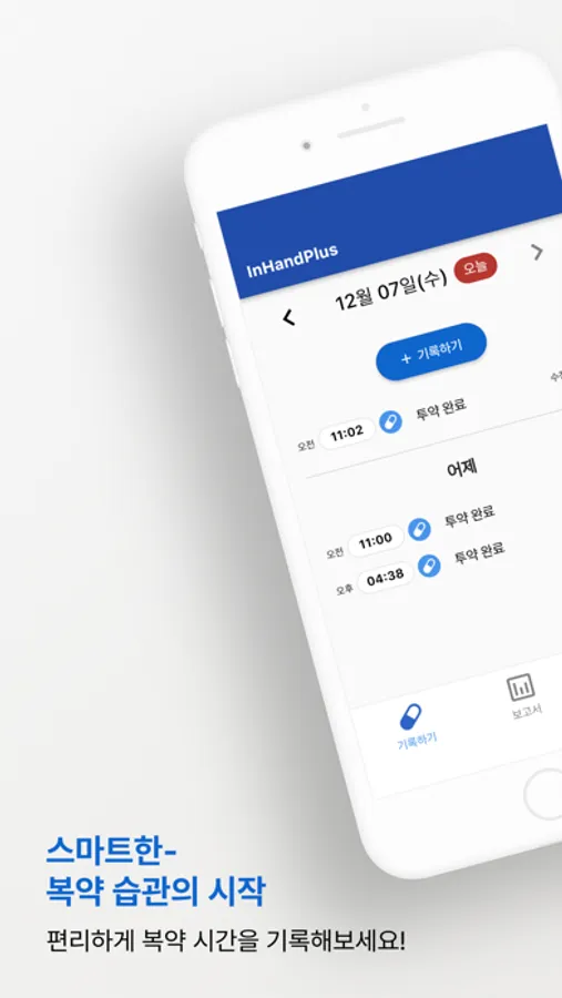 1. 복약 관리 : 복약 시간을 입력하고 관리할 수 있습니다.