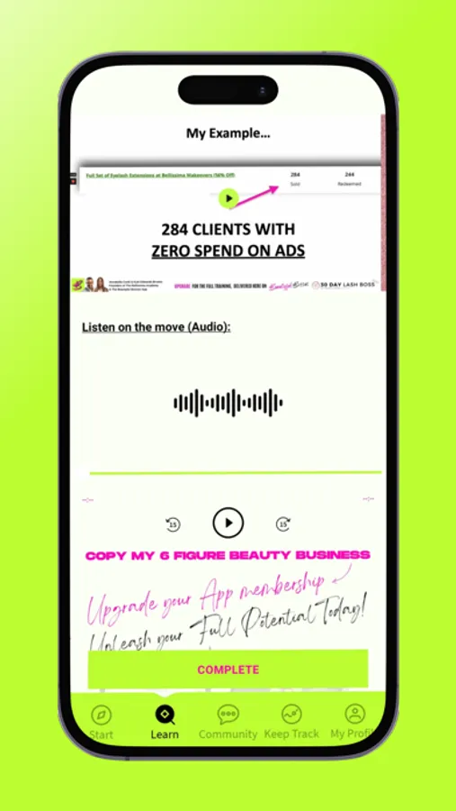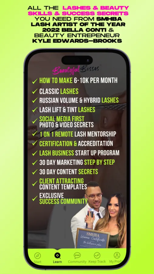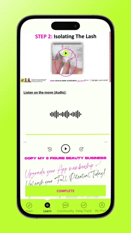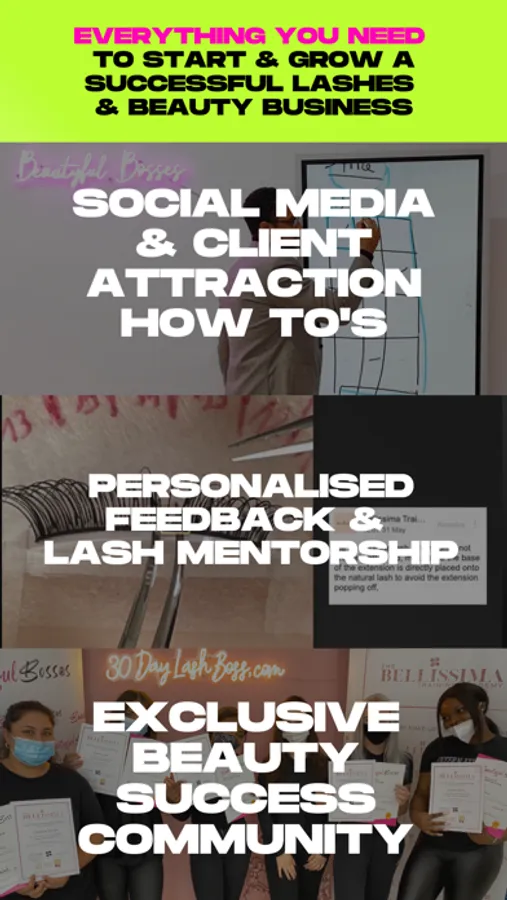 The App starts with all the eyelash extensions and beauty business start up training you need, we release a new fully accredited beauty program or business and marketing module to you every month.