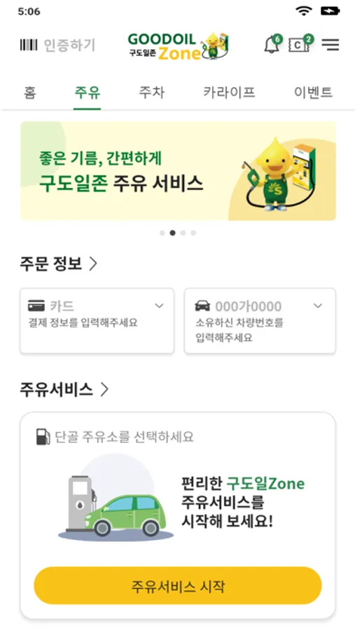 - 앱 설치 및 회원가입, 차량정보, 주유 주문정보, 결제수단을 미리 등록