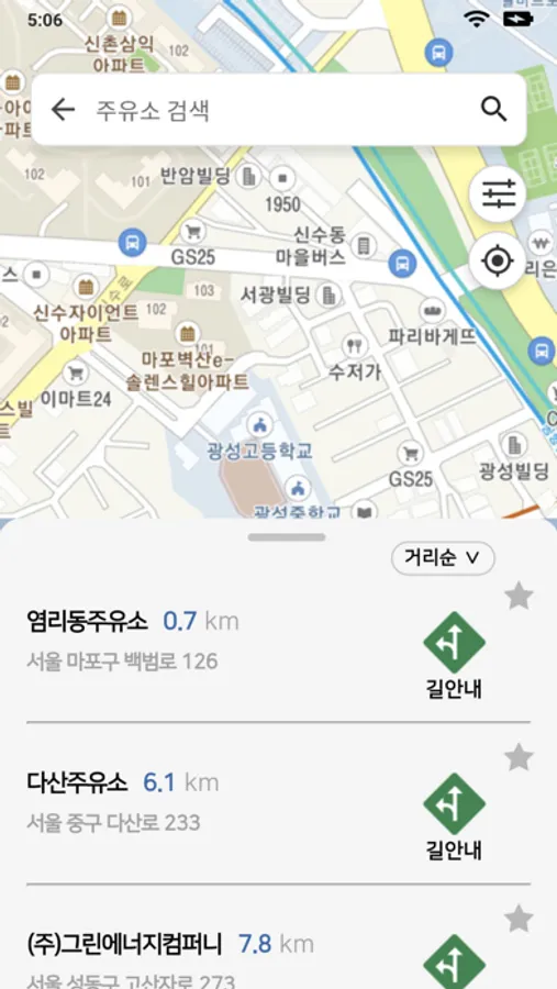 주유소에 진입하면 자동으로 아래의 화면으로 전환 됩니다.