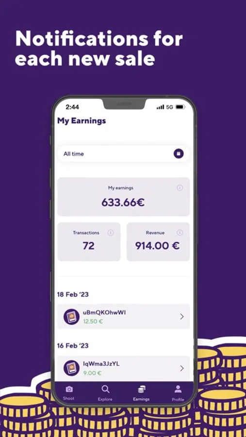Track your earnings over time and receive live updates whenever you sell a photoshoot.