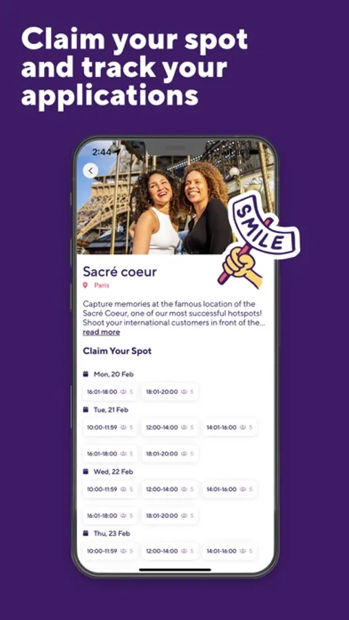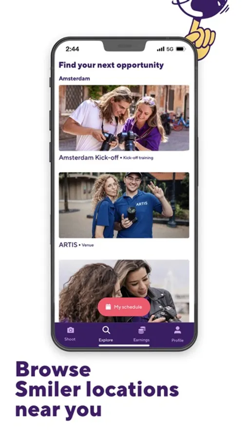 Explore and apply for new Smiler photography opportunities near you, manage your schedule at a glance and receive notifications on the status of your applications.