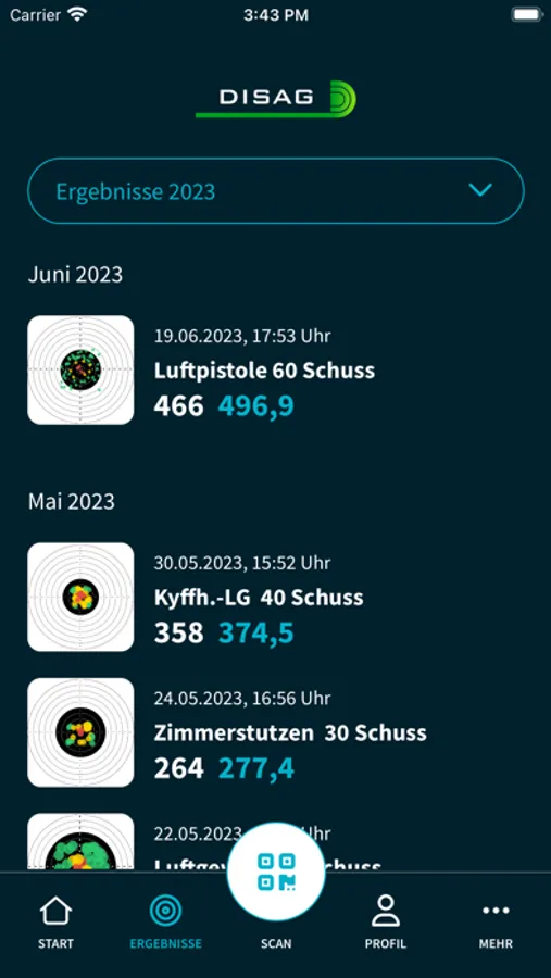Speichere die gescannten Schießergebnisse und Schussbilder in deiner persönlichen Ergebnisliste und greife jederzeit darauf zu.