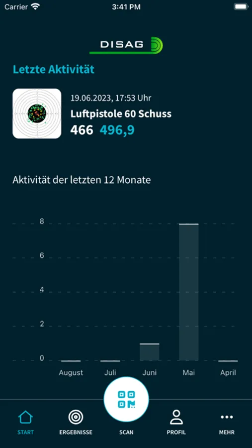 Deine DISAG OpticScore Schießanlage zeigt dir nach dem letzten Schuss einen QR-Code an, mit dem du dein Schießergebnis bequem in die App übertragen kannst. Nicht nur in deinem Heimatverein sondern auf allen DISAG OpticScore Schießanlagen auf denen du unterwegs bist.