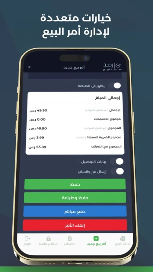 احصل على تجربة سهلة ومتكاملة لإدارة عمليات البيع في منشأتك من خلال برنامج نقاط البيع POS، سجل المدفوعات وتابع إدارة مخزون منتجاتك المرتبطة مباشرة بنظام رصد المخازن، وفر لعملائك فواتير مطبوعة أو إلكترونية مع إمكانية الإرسال عبر الواتس أب بسهولة، ويتميز البرنامج بالتوافق مع جميع احجام الاجهزة.