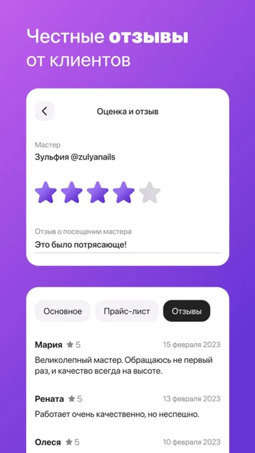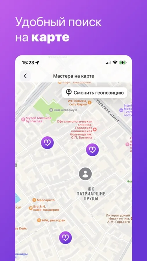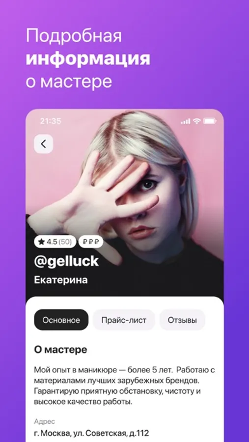 · Поиск по большому списку доступных мастеров — мы показываем только актуальные профили