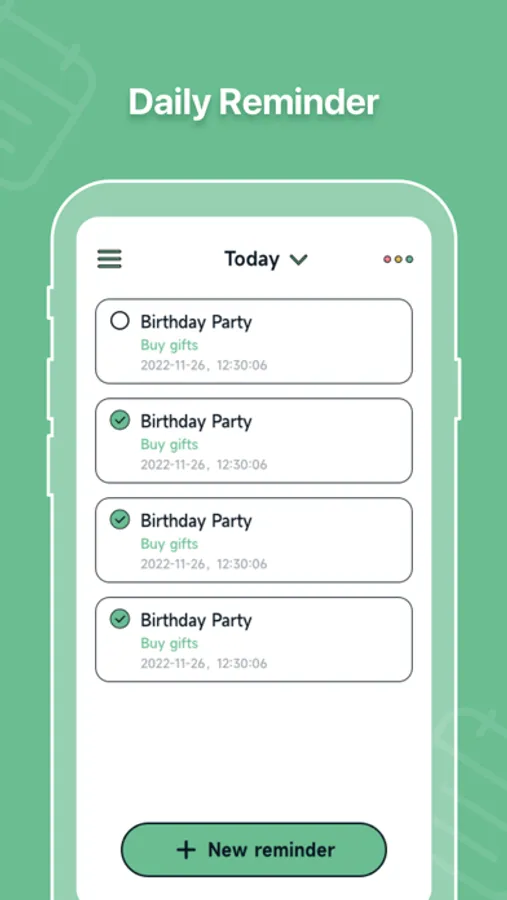 Do you occasionally forget something important? If your work and life are complicated, you can use Done Reminder. Record important events in your work and life, clearly classify and manage them, and remind you to complete them on time. Make your work and life easier and more organized.