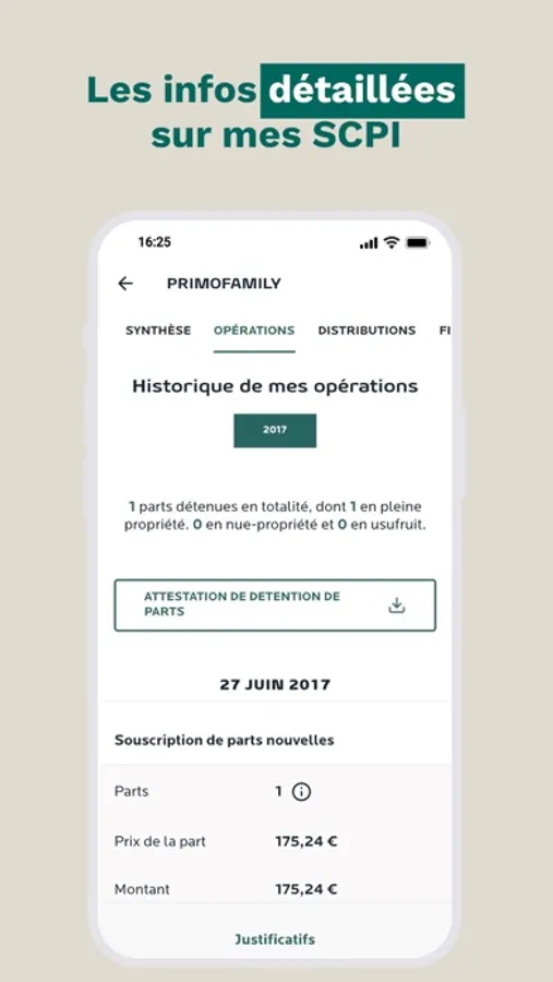 - Téléchargez en un clic et à tout moment votre attestation de parts et vos relevés de distribution