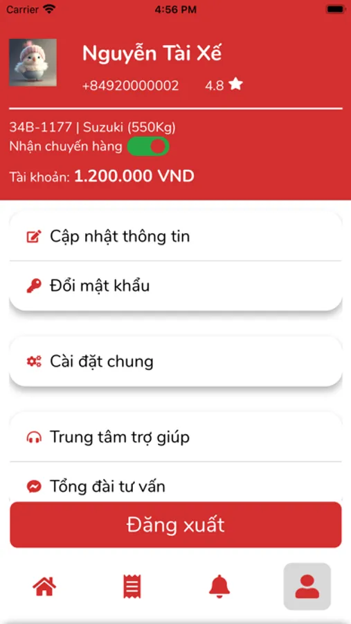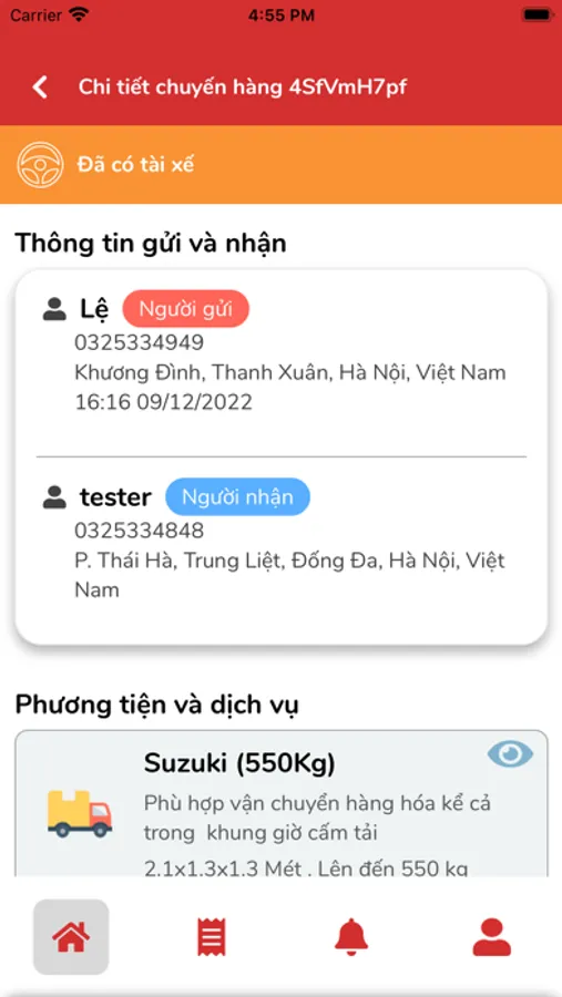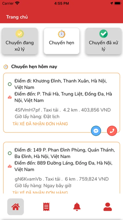 Tài xế sẽ nhận được thông báo về chuyến hàng mới nếu xe đang trống và ở gần khách hàng. Tài xế từ chối thì đơn hàng sẽ được thông báo đến tài xế khác.