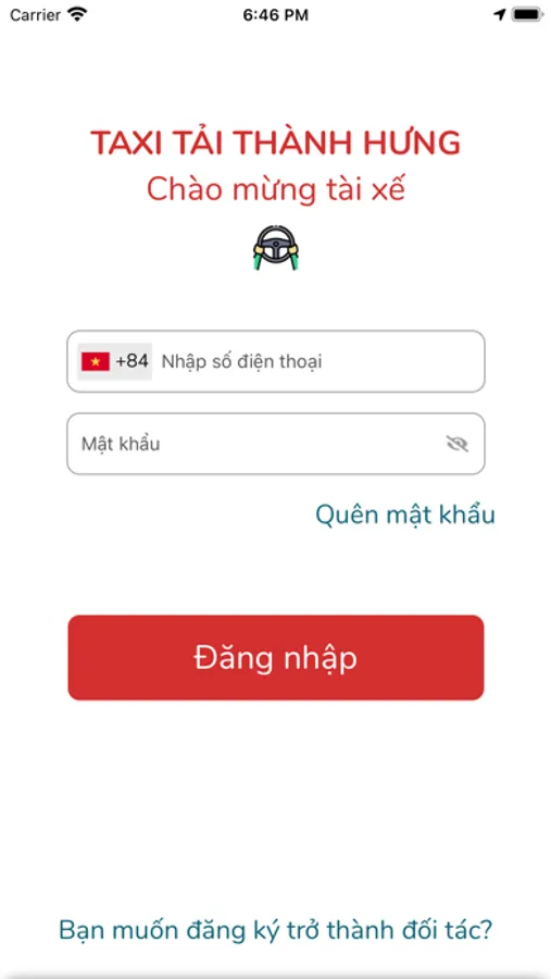 Tài xế đối tác tải App Thành Hưng Driver để đăng ký các thông tin đối tác. Sau khi đăng ký xong thông tin, Thành Hưng sẽ làm việc và phê duyệt hồ sơ của đối tác để trở thành đối tác chính thức.