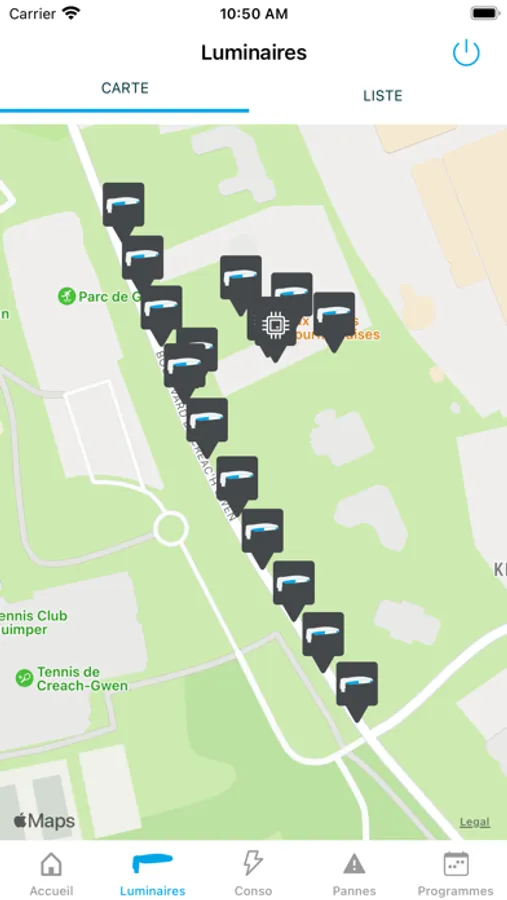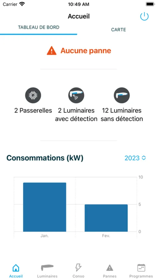 Visualisation des consommations, paramètres électriques et détections des luminaires et équipements d’éclairage public