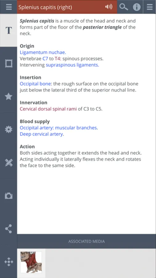Read detailed and accurate text for each structure using the T icon, and in a feature unique to Primal Pictures, each anatomical term in the text is linked to the appropriate model in the 3D model. Selecting these links will highlight the relevant structures, bringing the text to life and make learning anatomy more visual and immediate.