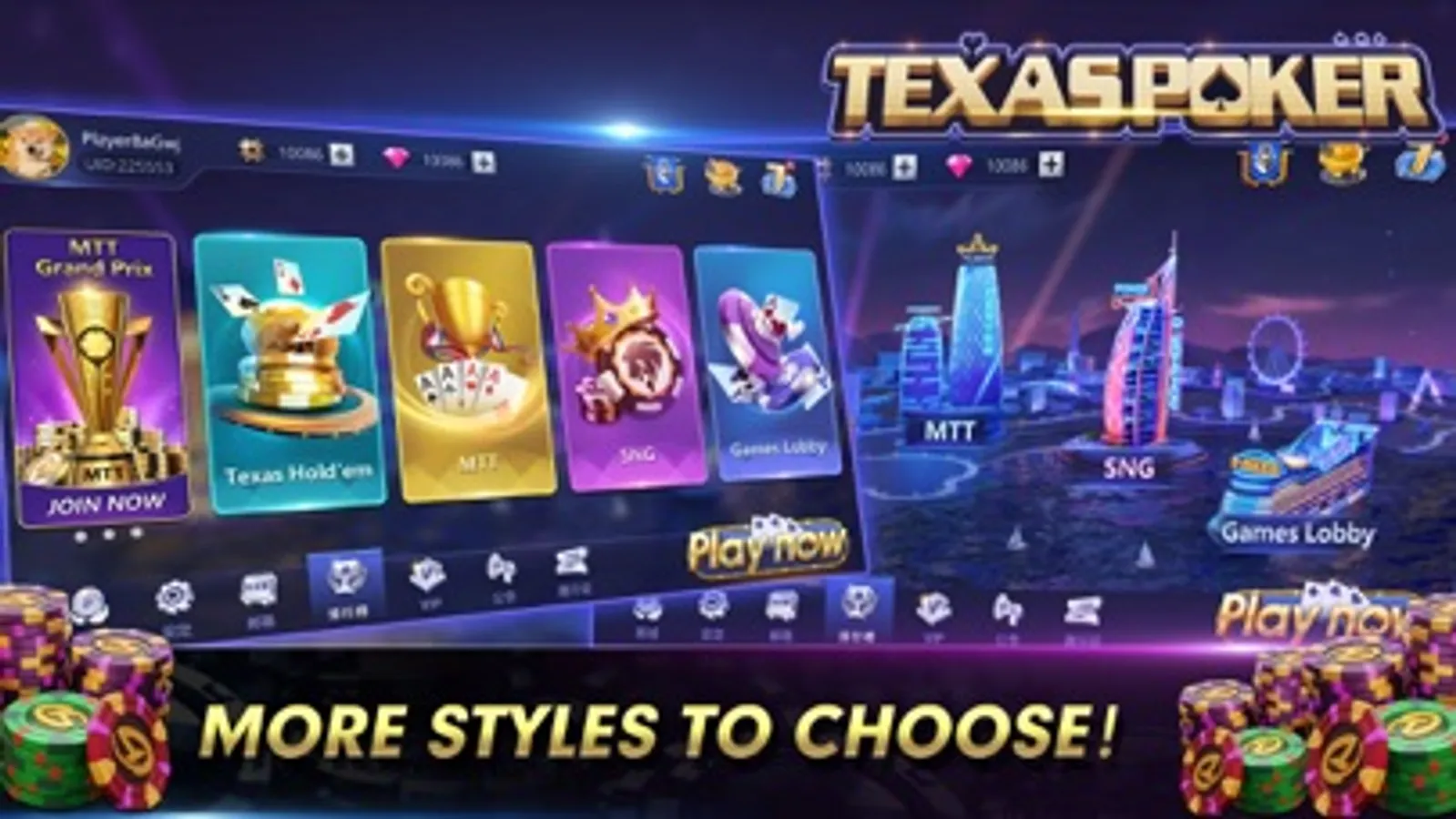 Texas Poker Everyday Happy Texas Hold'em is committed to providing the most authentic and professional Texas Hold'em game experience, compete in the game with real Texas Hold'em players from all over the world, enjoy the fun of gaming with real people anytime, anywhere, and become a better Texas Hold'em player!
