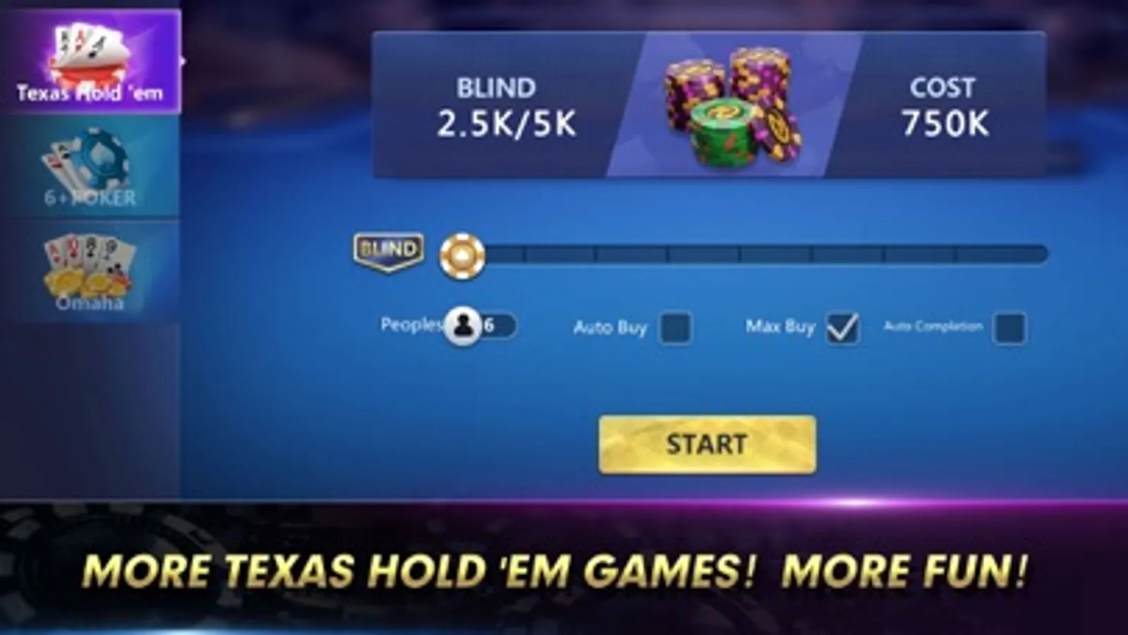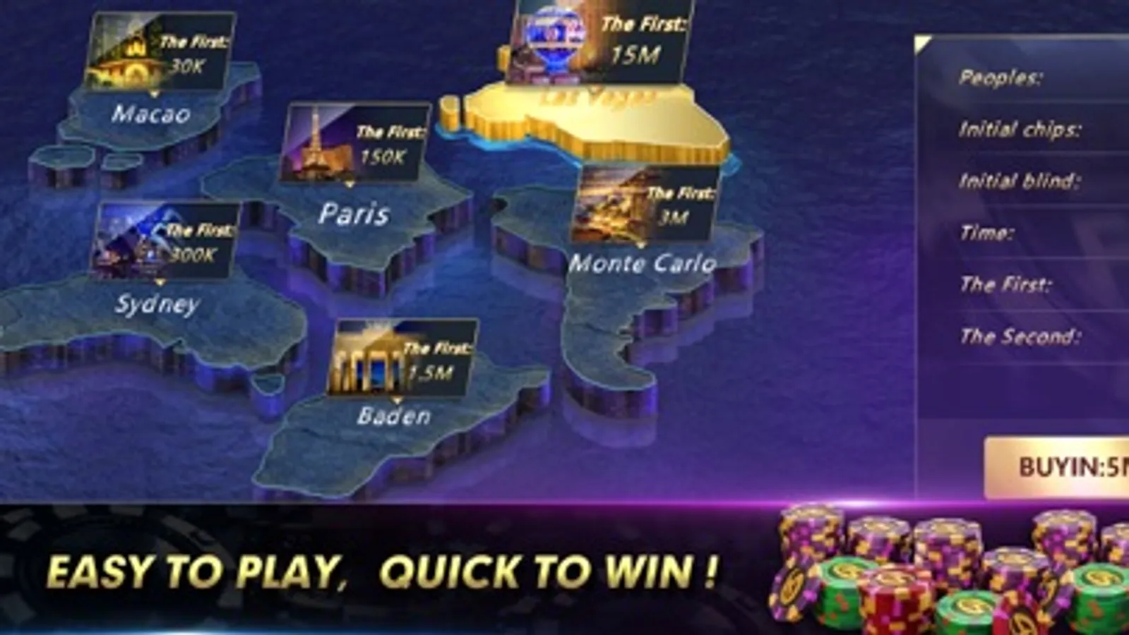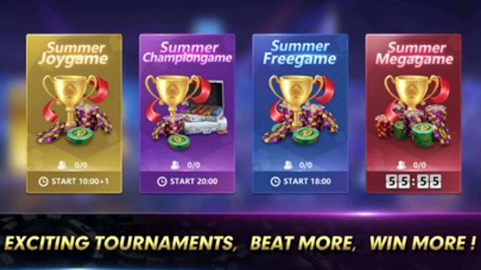 Rich modes: Tournaments with rich rewards start at any time! Defeat all competitors and win huge prizes; join SNG quick matches and win unique trophies or millions of chips! At the level that suits you, start your legendary road anytime, anywhere,