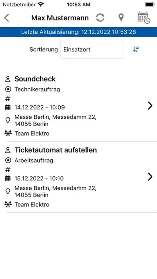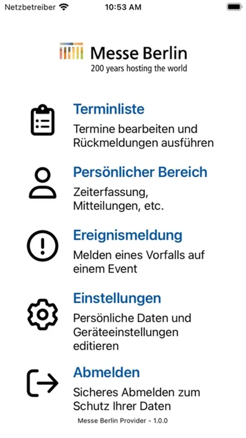 Mit der mobilen App können Dienstleister der Messe Berlin GmbH Arbeitsaufträge verwalten und zurückmelden.