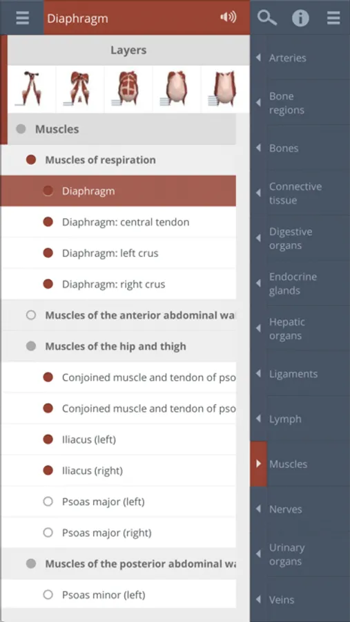 • The Contents folders arrange all 1,070 structures systemically, meaning you can browse by subcategory and switch all related structures on at once. It provides an excellent learning tool – for example turn on all branches of the superior mesenteric artery, or all the muscles of the abdominal wall.