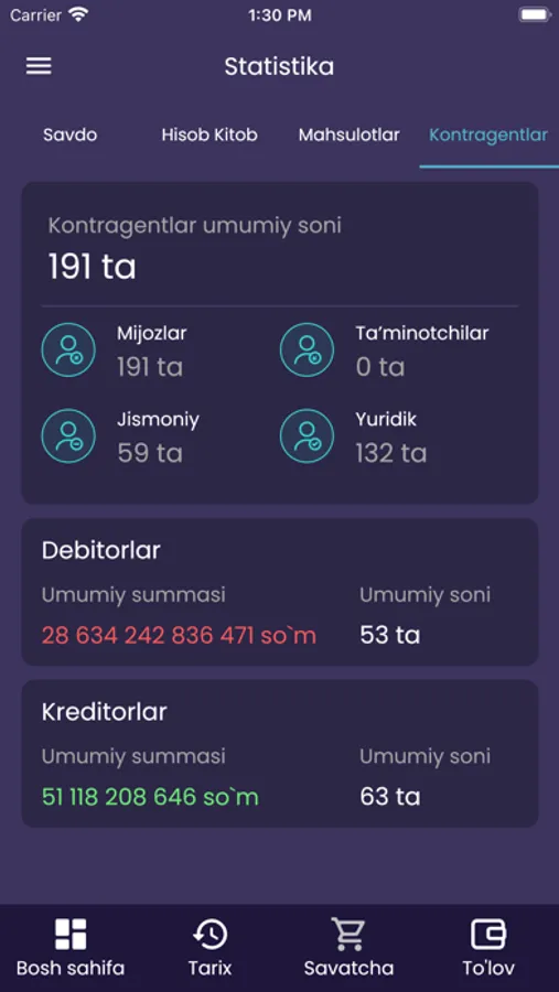 kabi ko'plab foydali ma'lumotlarni kiritishingiz va bilib olishingiz mumkin. Dastur biznesingizni avtomatlashtirib, uni istalgan yerdan boshqarish imkonini beradi.