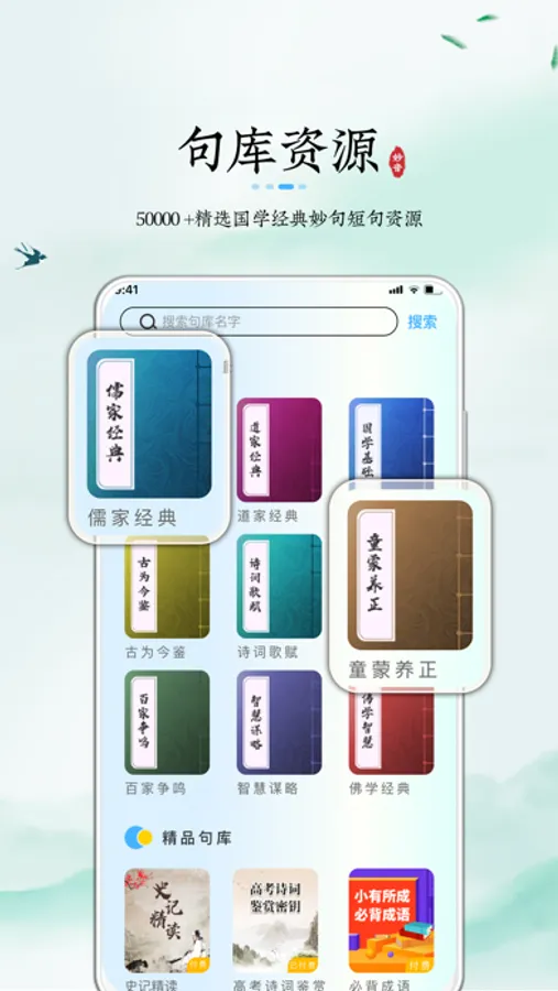 名句妙句,咬文嚼字、史记、中考语文、高考作文、小学必背古诗词大全、唐诗宋词、国学素养妙句,经典语录,国学基础、道家、儒家、诗词歌赋、鉴古知今、名言名句、智慧谋略等精品句库,免费注册即可使用,让学习没有门槛。