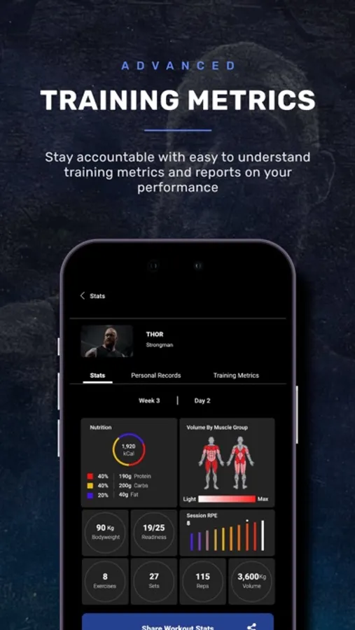 - Automatically track all your training metrics to ensure you are progressing toward your goal