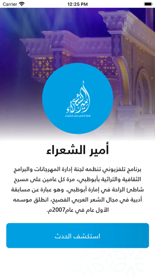 رنامج تلفزيوني تنظمه لجنة إدارة المهرجانات والبرامج الثقافية والتراثية بأبوظبي، مرة كل عامين على مسرح شاطئ الراحة في إمارة أبوظبي. وهو عبارة عن مسابقة أدبية في مجال الشعر العربي الفصيح، انطلق موسمه الأول عام في عام 2007م. يستقبل البرنامج في كل موسم آلاف القصائد من شعراء العرب على مستوى دول العالم، وتقوم لجنة التحكيم بفرز وتقييم الأعمال المشاركة، ليتم بعد ذلك استضافة أكثر من 150 شاعراً ممن وقع عليهم الاختيار في العاصمة أبوظبي، كما تقوم لجنة التحكيم بإجراء مقابلات فردية مع كل شاعر، ومن ثم يتم اختيار أفضل 40 شاعر من المتقدمين ليدخلوا في مرحلة الاختبارات وصولاً إلى قائمة الـ20 شاعراً الذين سيشاركون في الحلقات المباشرة للبرنامج.