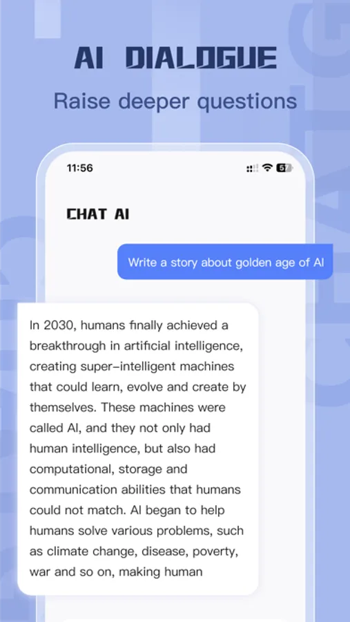 Powerful AI artificial intelligence can help you solve a variety of problems, such as life trouble, work trouble, study problems, do not know what to cook in the kitchen and so on, it will give you the appropriate solution.