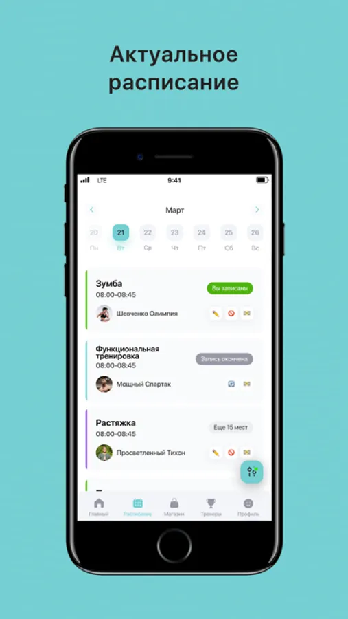 Посмотреть актуальное расписание тренировок;