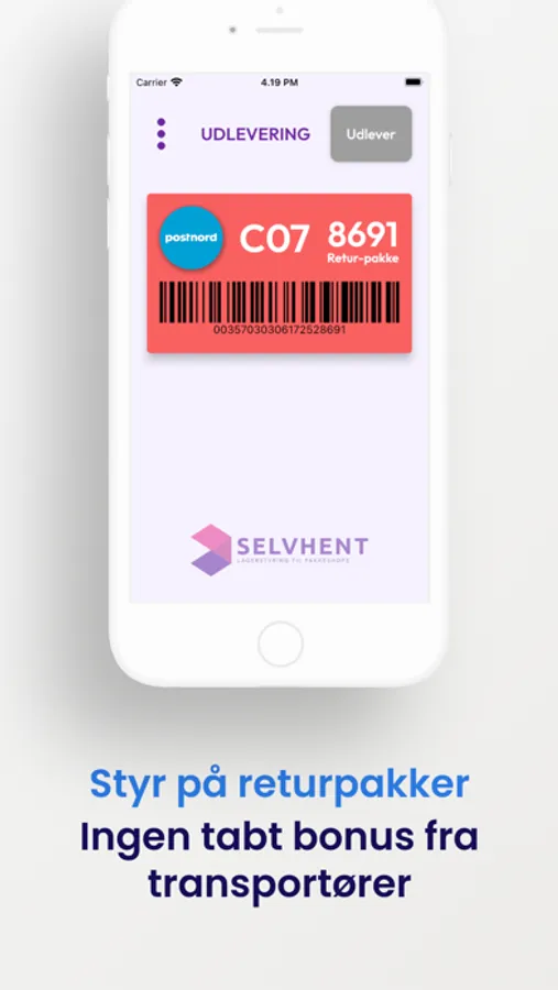 SELVHENT alarmerer dig når pakker skal sendes retur til en transportør. Dermed går du ikke glip af eventuelle bonusser fra de enkelte transportører, og det sparer samtidig plads på pakkelageret.