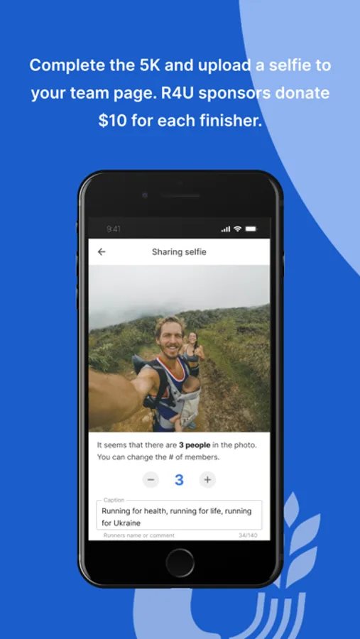 Finisher selfies are posted on their team page. For each finisher, a sponsor donates $10 to four non-profits. Each Team Page shows the # of finishers, selfies, donations, etc. Each 5K team finisher receives a digital R4U Certificate.
