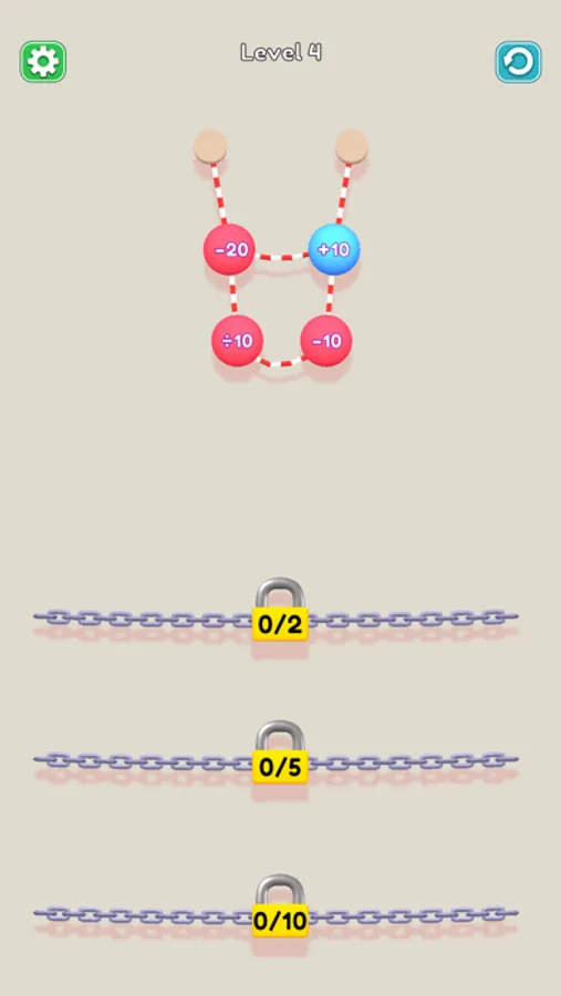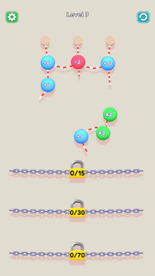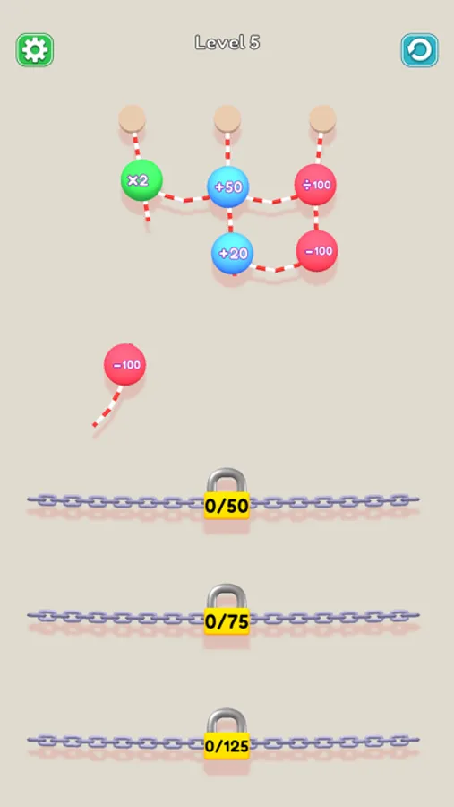 Can you cut the ropes in the correct order? You have to be careful and make good calculations to reach the target number.