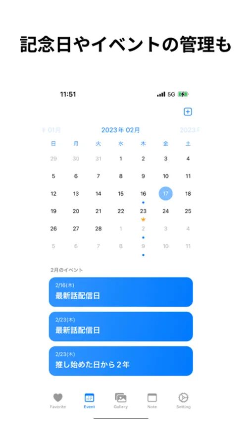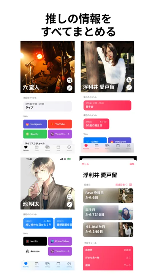 - 推しの基本情報・記念日・SNSやWebサービスの登録